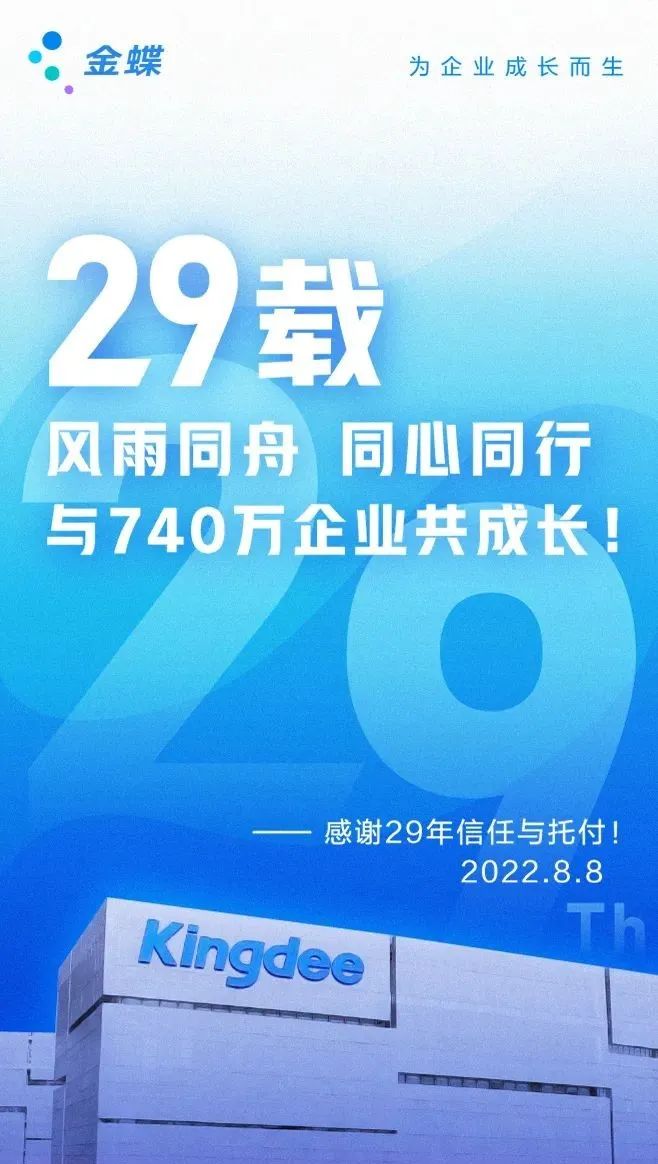 二十九年峥嵘岁月,二十九年春华秋实,2022年8月8日,金蝶29岁了!