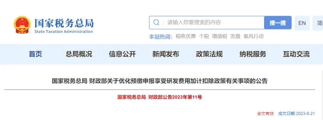 财政部 税务总局公告2023年第7号;国家税务总局财政部公告2023年第11
